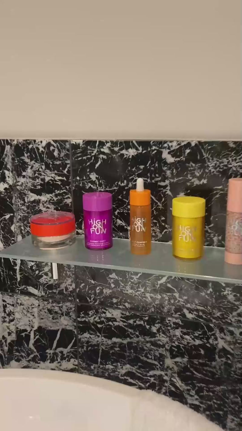 Cosmic Dust is more than a cleanser - this ultrafine powder transforms on contact with water into a luxurious violet foam with a delicate powdery scent. Working enzymatically - no scrubbing, no friction - it melts away dead cells, excess sebum and urban grime.