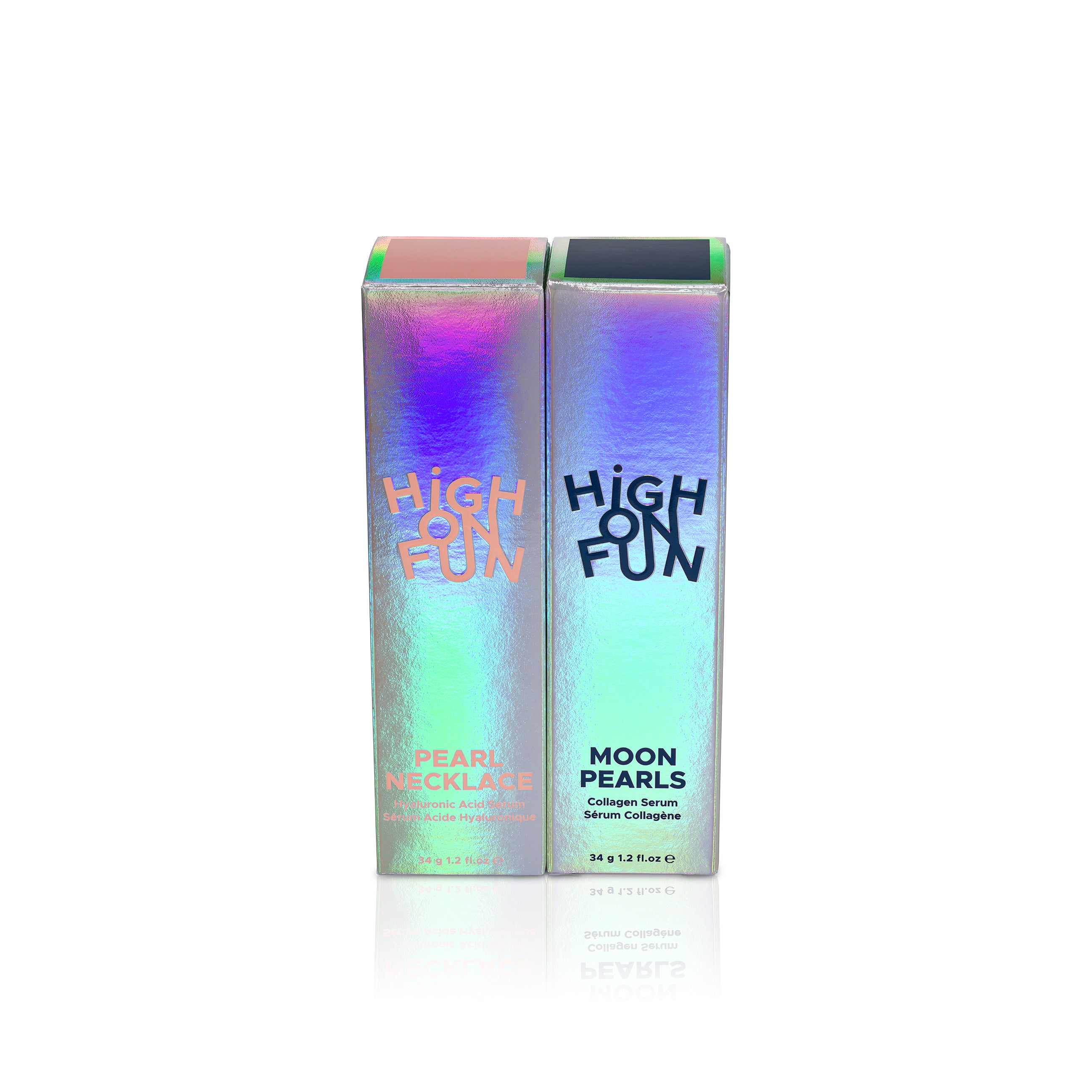 Deux sérums, un rythme parfait. Ce duo soutient votre peau 24h/24 - avec hydratation le jour et régénération la nuit. Le matin, Pearl Necklace, notre sérum à l’acide hyaluronique, hydrate intensément et lisse la peau pour un teint frais, rebondi et naturellement glowy toute la journée. Le soir, Moon Pearls, concentré en collagène vegan nouvelle génération, agit pendant le sommeil pour restaurer l’élasticité, lisser les ridules et raffermir visiblement. Ensemble, ils forment un rituel sensoriel haute performance, ancré dans la biotechnologie - clean, efficace et profondément satisfaisant.